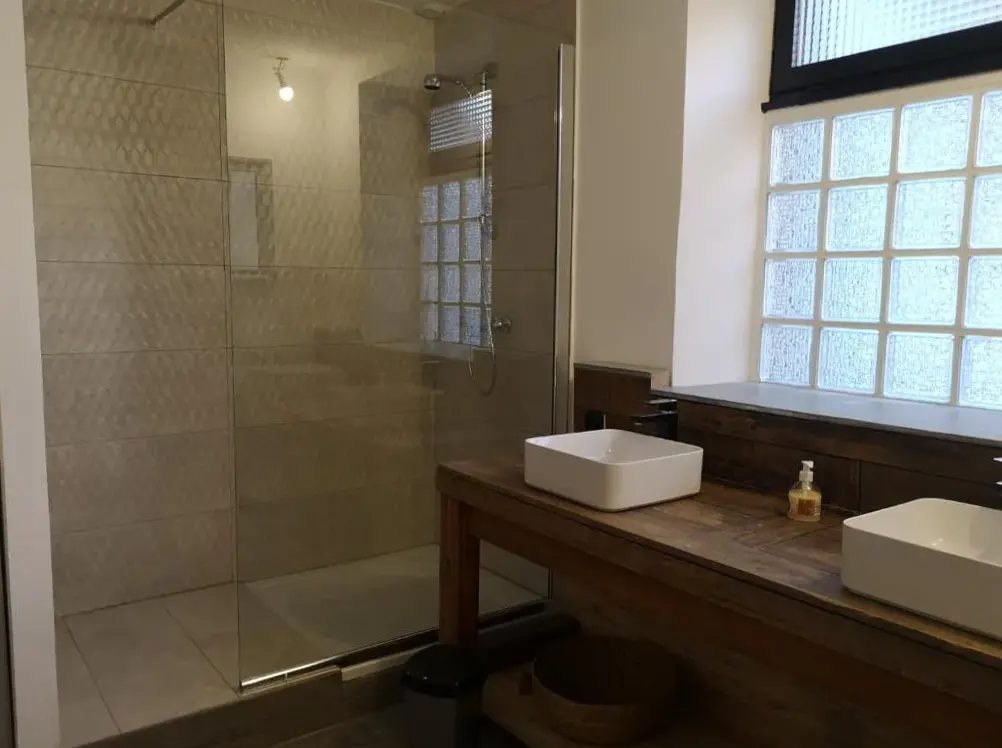 Toilettes en bas d'un escalier en colimaçon étroit, précaire la nuit depuis les chambres. Pas d'articles de toilette, juste ce que les clients précédents avaient laissé derrière eux.